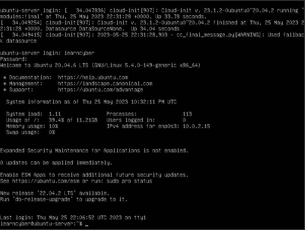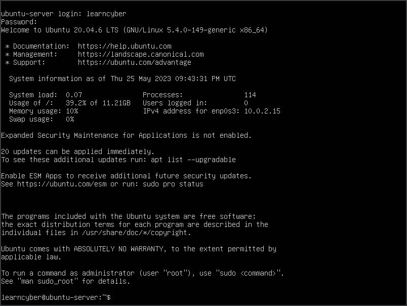 learncyber@ubuntu-server:/$ sudo reboot