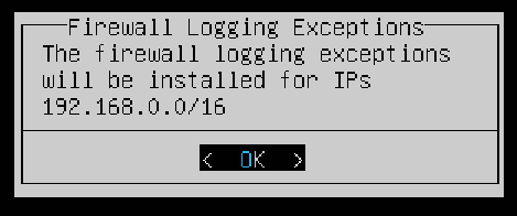 Next you can enter the IP addresses that the firewall will not log and will not redirect to the honeypot ports. Ensure your local network is entered in the field then select OK to proceed to the next step.