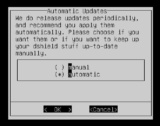 The next screen will ask if you’d like updates to be done automatically or manually. It’s recommended you choose automatic. Select OK to proceed.