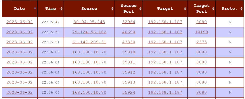 Logs will be sent to DShield every 30 minutes. You can check out the logs by logging in to your DShield account and going to your dashboard. These are the logs after a few hours of running the honeypot: