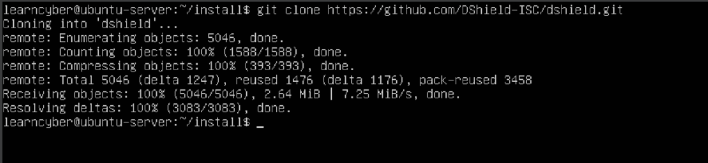 learncyber@ubuntu-server:~/install$ git clone https://github.com/DShield-ISC/dshield.git