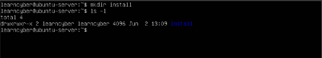 learncyber@ubuntu-server:~$ mkdir install