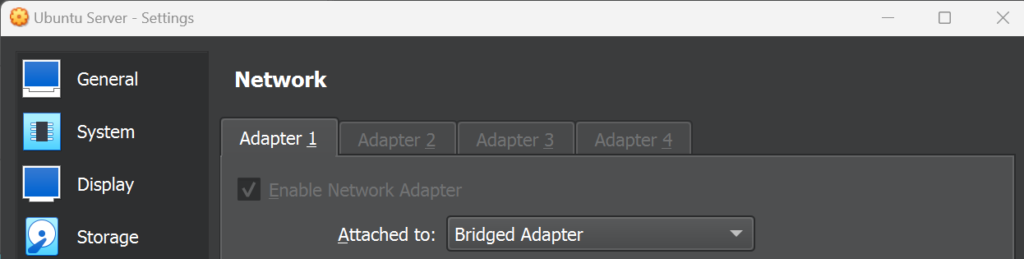 - In the Attached to field, select Bridged Adapter