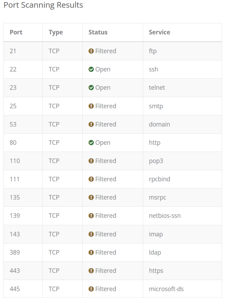 After applying the changes, you can test your set up by using a free Online Port Scanner to scan your public IP address (which is then internally forwarded to the Ubuntu VM’s address). Your results should show something similar to the images below.