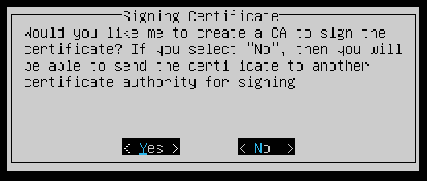 The script can create a Certificate Authority (CA) to sign the certificate, select Yes to proceed.