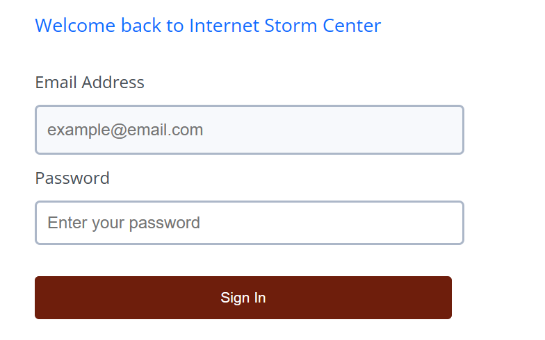 Log in to your account: Internet Storm Center